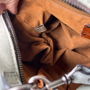 Patricia Nash Fiora Mint Green White Wax Leather Tooled Dome Satchel/Crossbody