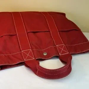 Hermes vintage heavy canvas tote rare red with white detail