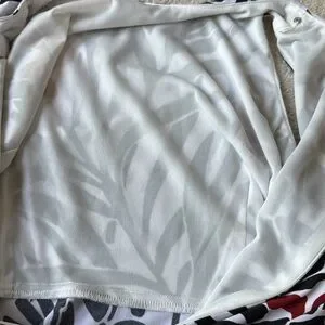 Size: Small with a little stretchy material. The top part is lined & has snap buttons to hold on to your bra.