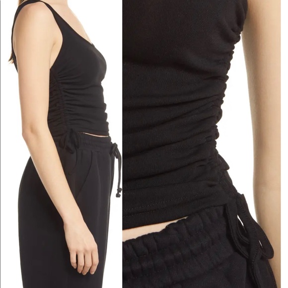 4th & Reckless Annoshka Cinched Side Tie Jersey Tank, Size Small in Black Rib Jersey 🤩 Soft, stretchy and sporty, this everyday tank is cinched with ruched-and-tied sides for effortless street-ready style.
