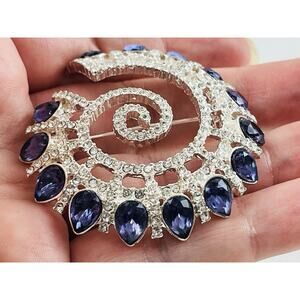 NAPIER Vintage Brooch Purple/Clear Rhinestone Large 2" Spiral Shell Pin Lavender Chunky Sparkly Teardrop Rain drop Amethyst ?