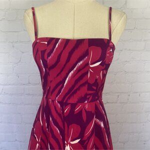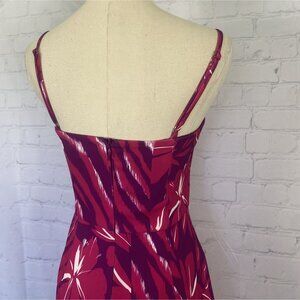 Bold and flirty vintage mini dress by French Connection! Featuring vibrant floral and abstract print in rich purples and pinks with cami straps and a flattering fit-and-flare cut.