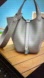 This elegant gray leather bucket bag is perfect for any occasion. Its sleek design and high-quality material make it a must-have accessory. Ideal for both casual and formal settings. Heavily designer inspired
