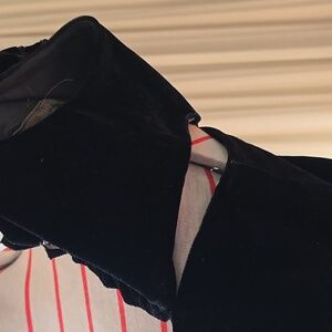 Vintage 1920s / 1930s Full Length Black Velvet Dress with Mesh Leaf Cut Outs