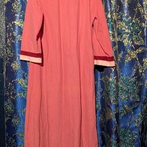 vintage pink striped zippered Sears at home wear housecoat/robe. excellent condition--doesn't look like it's been worn much if at all.