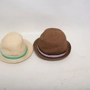 Adorable lot of 2 baby boy straw Fedora sun hats — perfect for sunny days, beach outings, or warm-weather photoshoots! Both hats are in excellent condition, gently used with no damage.