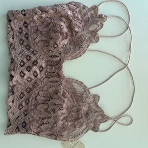 Airy crochet plays up the romance of a longline Free People bralette backed with crisscrossing straps and a comfortable panel of shirred lace.