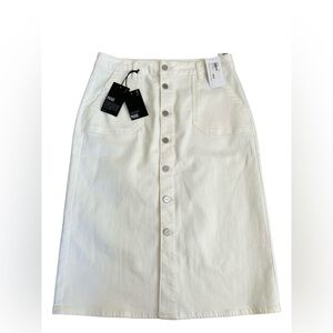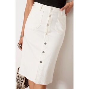 Paige Meadow Utility Patch Pockets Midi Denim Skirt In White NWT Size 31