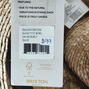 BRIXTON Leigh Straw Fedora Hat Extra Small 6 3/4 Adjustable Timeless UV 50