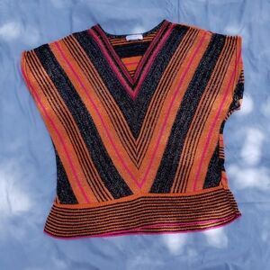 Jamie Nicole Collection Orange black and hot pink striped knit top
