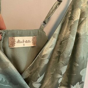 Altar'd State Sage Green Satin Floral Strappy Mini Skirt A-Line Wrap Dress
