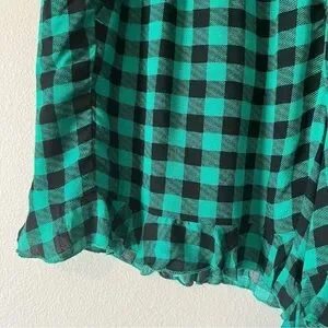 Torrid Women’s Plus Size Gingham 5-Inch Gauze High-Rise Short Ruffle Hem Green 1