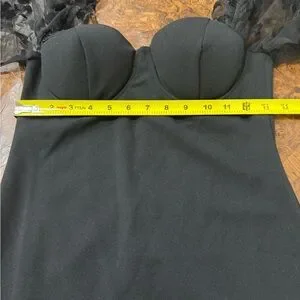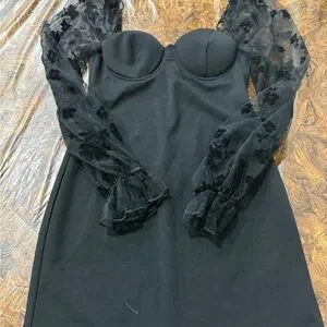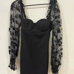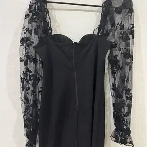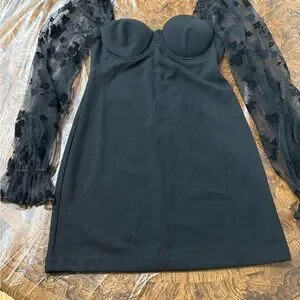 This elegant black sheath dress from Windsor is perfect for a cocktail night out. It features long bishop sleeves and a flattering sweetheart neckline, offering a sophisticated and stylish look for any special occasion.