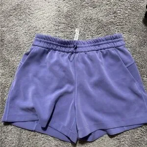 Soft lavender shorts with elastic waistband. Ideal for workouts or casual outings.