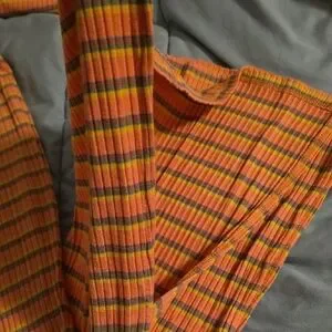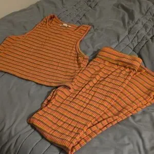 Vibrant striped tank and pants set. Comfortable and stylish. Perfect for casual wear.