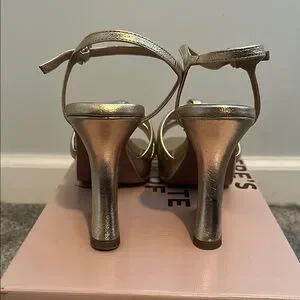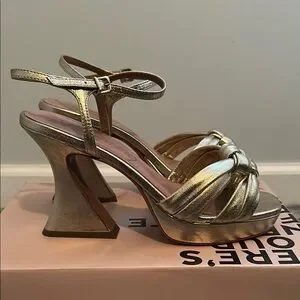 Anthropologie Gold Strappy Block Heel Sandals