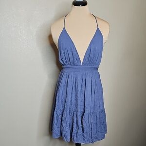Windsor Medium Free Spirit Halter Backless Blue Ruffled Tiered Sundress