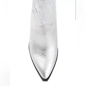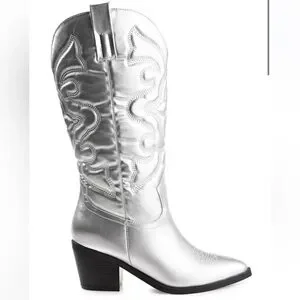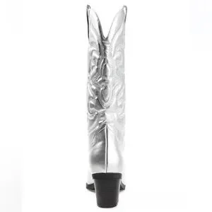 Step out in style with these stunning silver western-style women's boots. Perfect for adding a touch of elegance to any outfit and perfect for concerts or festivals.