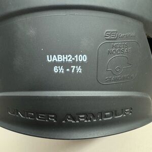 Sleek black helmet with a carbon fiber appearance. Ideal for safety and style. Meets NOCSAE standard. Helmet shell built with strategic ridges and grooves for added strength. Large ventilation ports and a Heat Gear liner keeps you cool, dry and light.