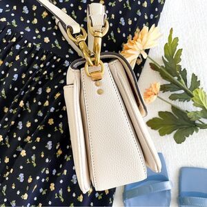 This listing is for a beautiful authentic Coach purse. The polished pebble leather design is finished with a signature turnlock closure and interchangeable straps for versatile styling. With minimal signs of wear, if any, it is in amazing condition. This bag is 8 inches wide, 6.5 inches tall, and has a 3 inch depth. The handle has a 4 inch strap drop and the adjustable crossbody strap drop ranges from 20 inches to 23.5 inches (it is 22 inches at the current setting). This listing includes the bag, handle, adjustable crossbody strap, and a Coach dust bag.