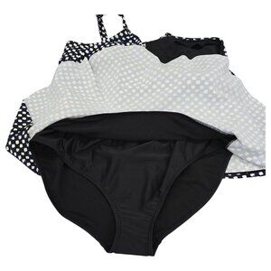 Jaclyn Smith One Piece Swimsuit Polka Dot Black White Layered Womens Size 20
