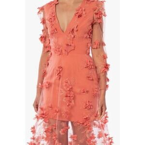 Anthropologie Helsi Blair V Neck Dimensional Coral Floral Gown Maxi Dress M NWT
