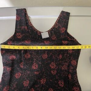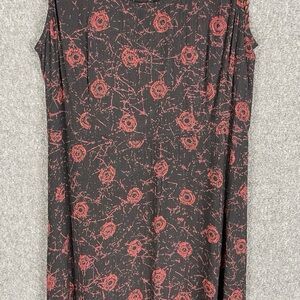 Women’s Romantic Black Gothic Red Ruby Print Sleeveless Midi Shift Dress Large