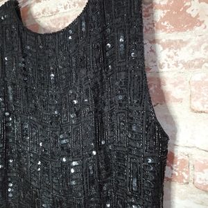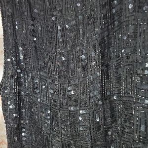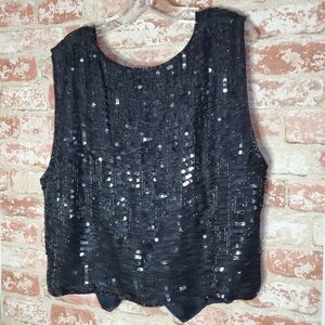 Elegant black vest with shimmering sequins. Perfect for a night out. Adds a touch of glamour.