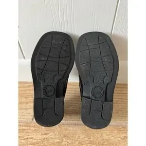 This 3 pair bundle includes 1 pair of black dress shoes (size 7), 1 pair of sandals (size 7/8) and 1 pair of clogs (size 7/8)