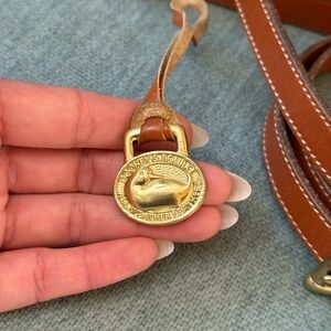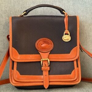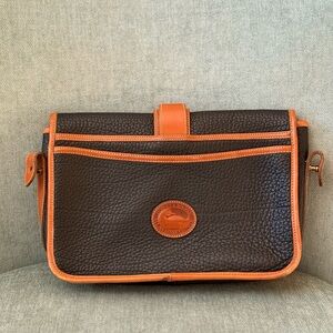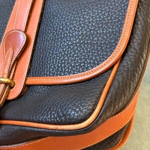 Vintage Dooney & Bourke All Weather Pebbled Leather Large Equestrian Shoulder Bag - Black and Tan