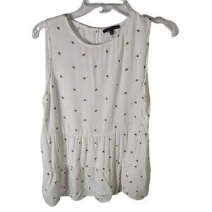 Staccato White Leaf Print Round Neck Tiered Hem Sleeveless Top Women's Size Large