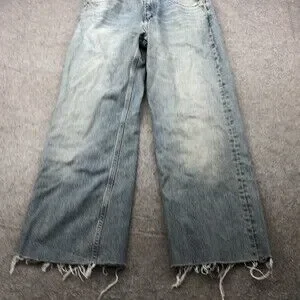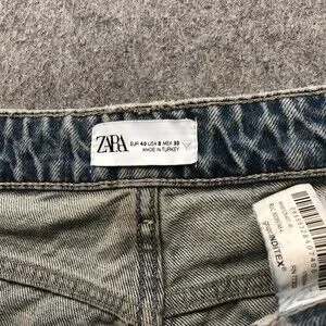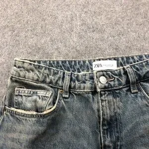 Zara Jeans Womens 8 Blue High Rise Wide Leg Distressed Frayed Hem Denim Pants