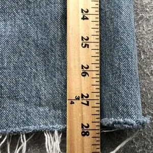 Condition: Good pre-owned condition. Moderate fading and wear consistent with vintage wash. Hem is intentionally frayed/distressed as part of the style. No holes or stains noted.