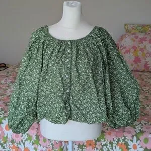 Embrace elegance with this floral green top. Perfect for any occasion.