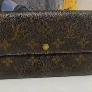 This Louis Vuitton wallet showcases the iconic brown monogram canvas, offering a timeless touch of luxury. Its classic design is perfect for those who appreciate elegance and sophistication in their accessories.