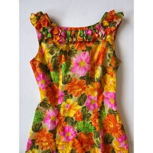 Vtg 60's Liberty House Ja-Na Tropical Floral Hawaiian Maxi Dress Sz S/M Retro