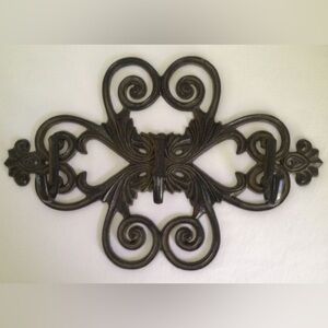 This three-hook hanger is perfect in the foyer for coats, in the bathroom for robes, or in the kitchen for keeping track of your keys. Black with dusty-gray finish.