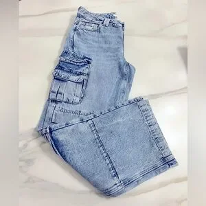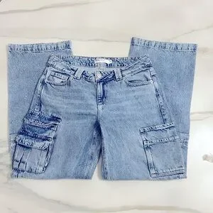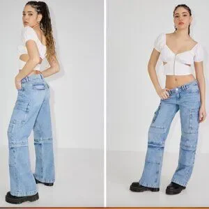 GARAGE Low Rise Wide Leg Cargo Jean - Ronnie Blue