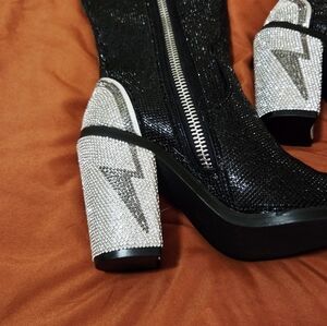 Dolls Kill Sheriff Shine Knee High Boots - Noir Ziggy - Club EXX - NWOT