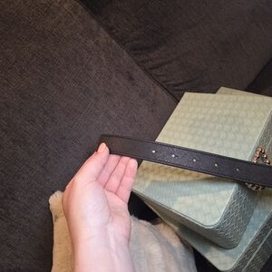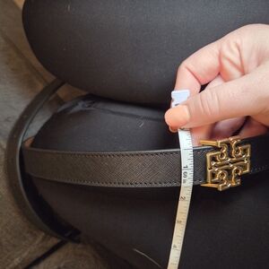 Tory Burch Elegant Black/ Brown Reversible Belt with Gold Emblem