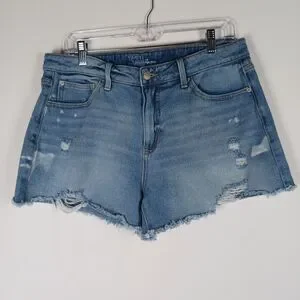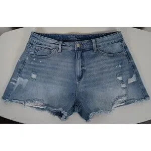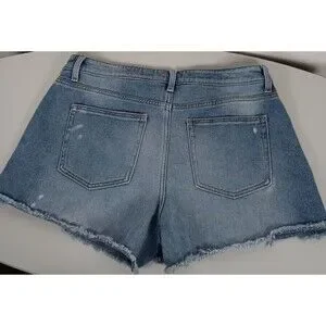 Time & Tru Size 12 Women's High Rise Distressed Denim Jean Shorts Stretch