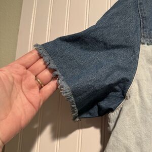 Vintage Denim Patchwork Western Shirt Star Studs Frayed Short Sleeve Size XL