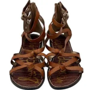 Sam Edelman Gladiator Sandals – Cognac Leather Flat Sandals Women’s 8