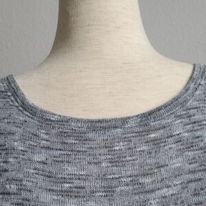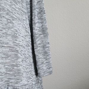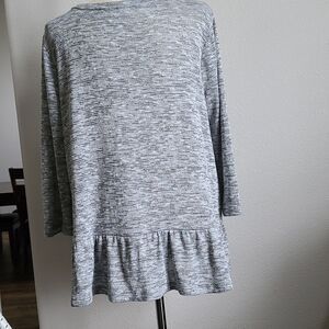 Super cute top, semi ruffled bottom. Crew neck. Three quarters sleeves, beautiful gray and white color combo.