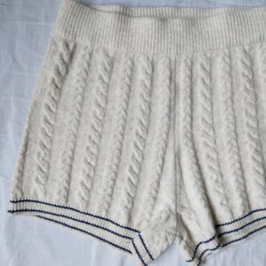 Victoria's Secret Pink Cable Knit Shorts Ivory Navy Preppy Womens Medium