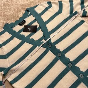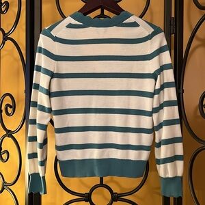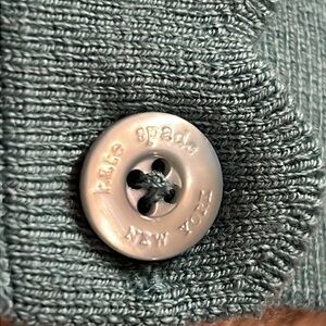 Very pretty, preppy, fancy, cozy, slightly oversized cardigan. Center front buttons. Logo on scalloped hem. Lightweight and soft fabric blends of polyester and nylon-yarn. Dry clean only. Colors: Cream/Wild Sage. Should you have any questions, please do not hesitate to ask. Thank you for visiting my closet. 💐