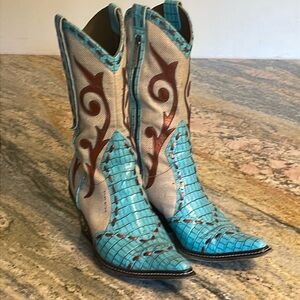 Donald J. Pliner Boots teal blue with moc - croc