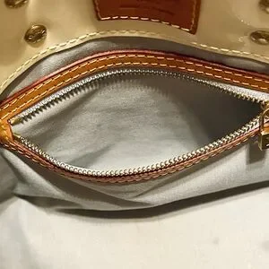 Gorgeous LV Reade PM size purse in creamy yellow. Beautiful condition inside and out! Gold hardware, one interior zipper pocket, gray fabric interior. Very hard to find in this condition. Comes with dust bag.