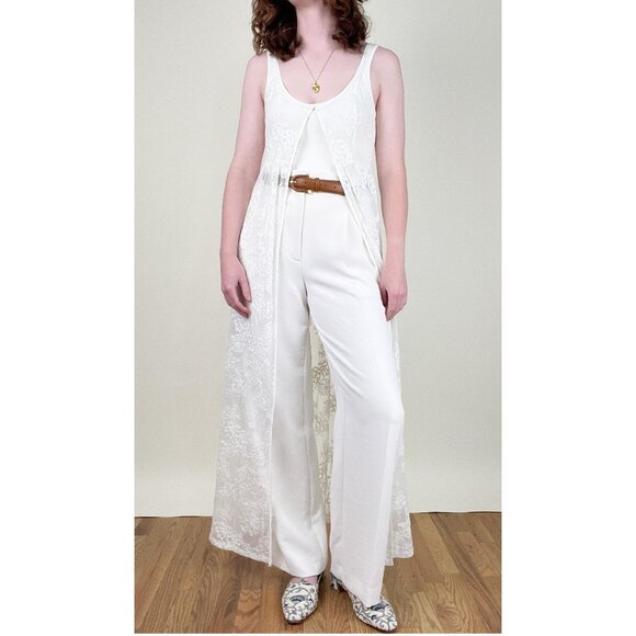 Stunning Vintage Embroidered Floral Lace Sheer Mesh Duster Cardigan Maxi Dress Coat Sexy