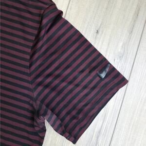 Nike Dri-Fit Striped Black/Burgundy Golf Short Sleeve Collared Polo Men Sz XL